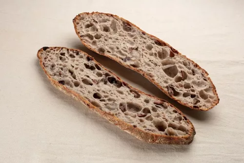 Harina de trigo espelta, harina de trigo, grano de trigo espelta germinado, masa madre de harina de trigo, agua y sal.