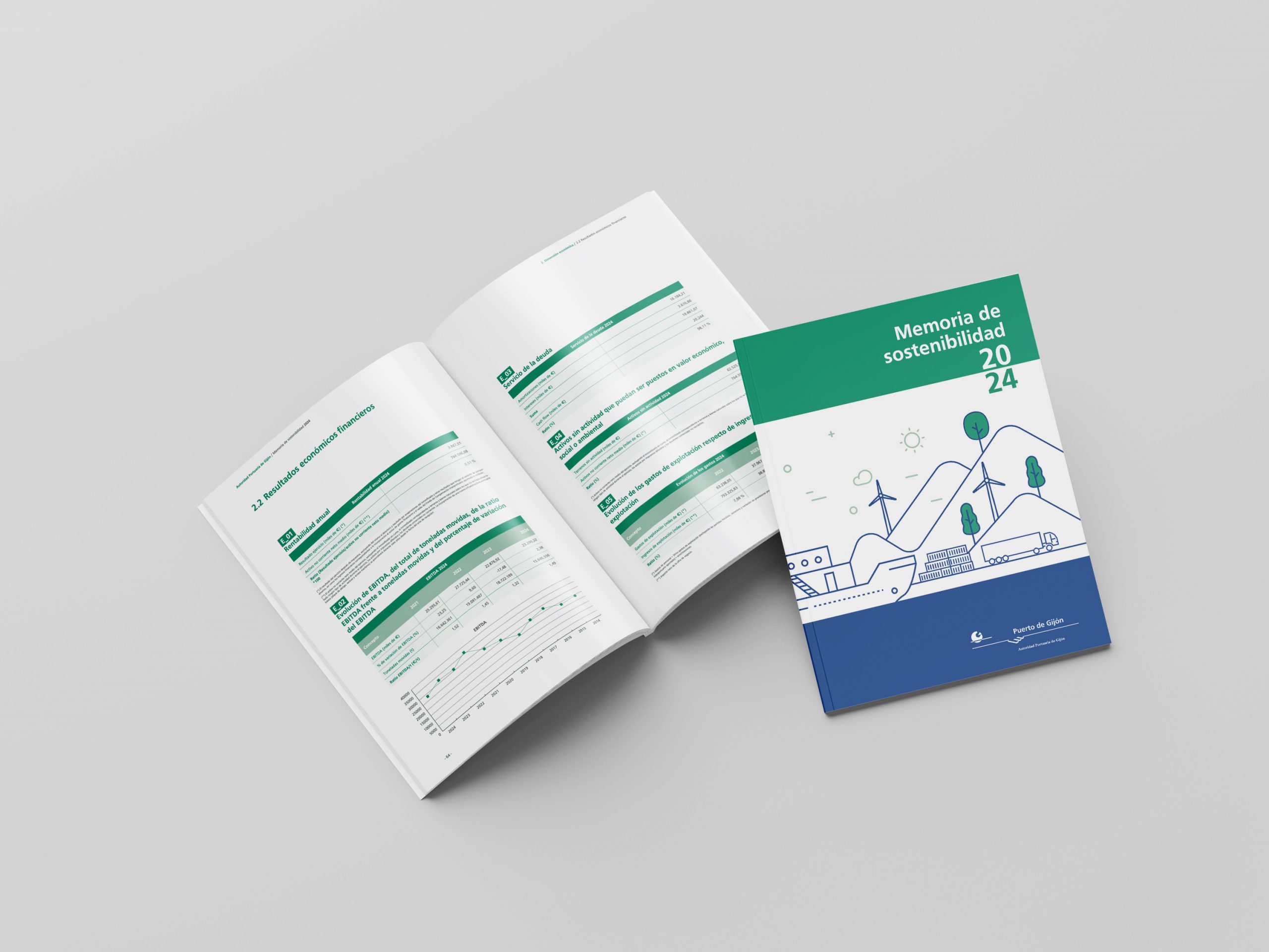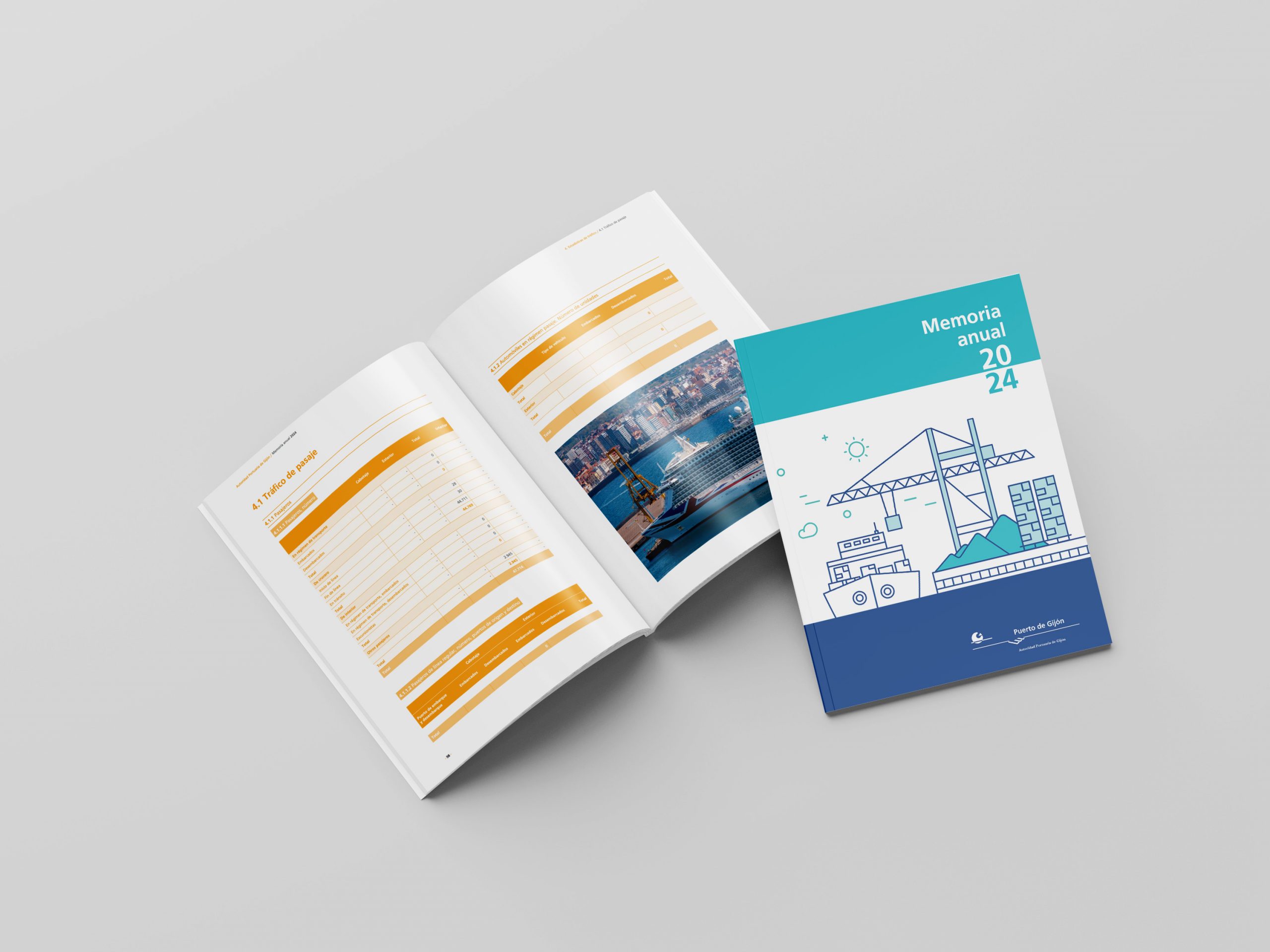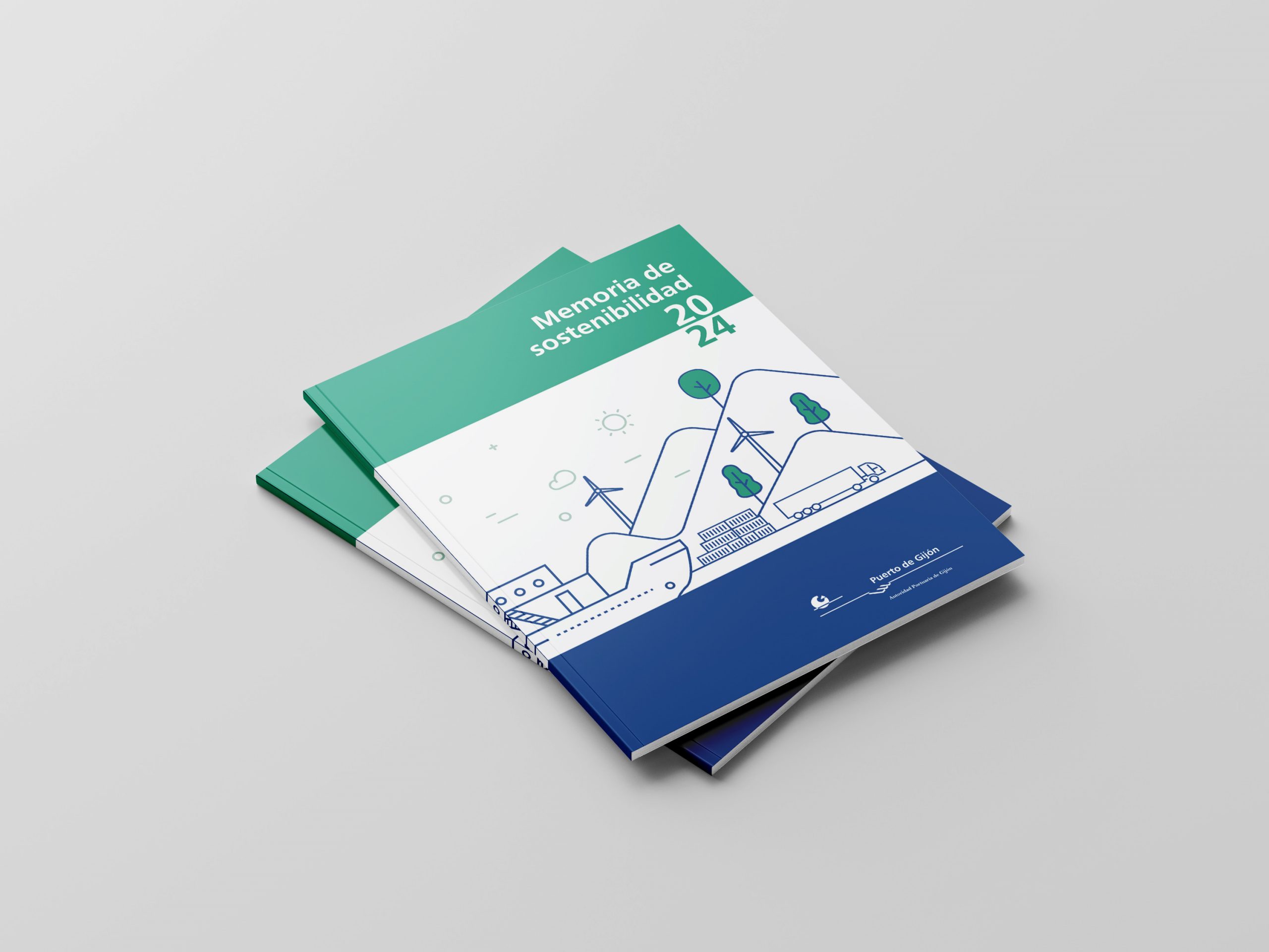 Diseño editorial de la Memoria Anual y la Memoria de Sostenibilidad del Puerto de Gijón 2025.