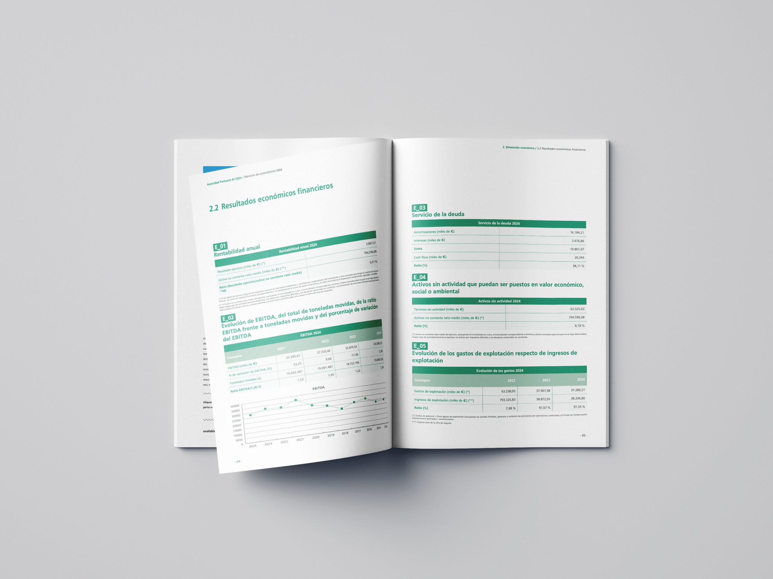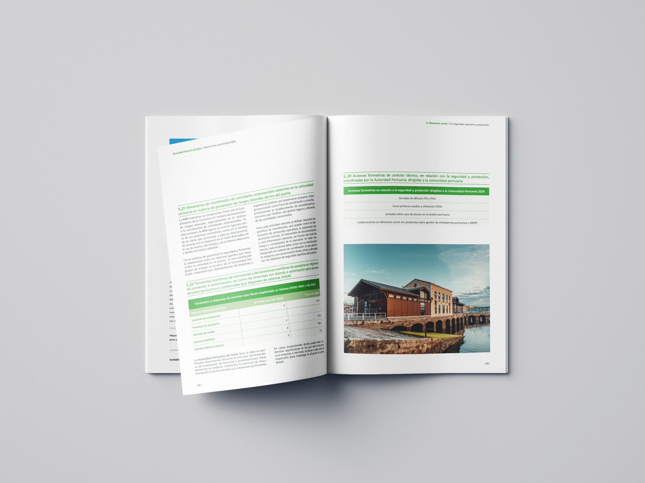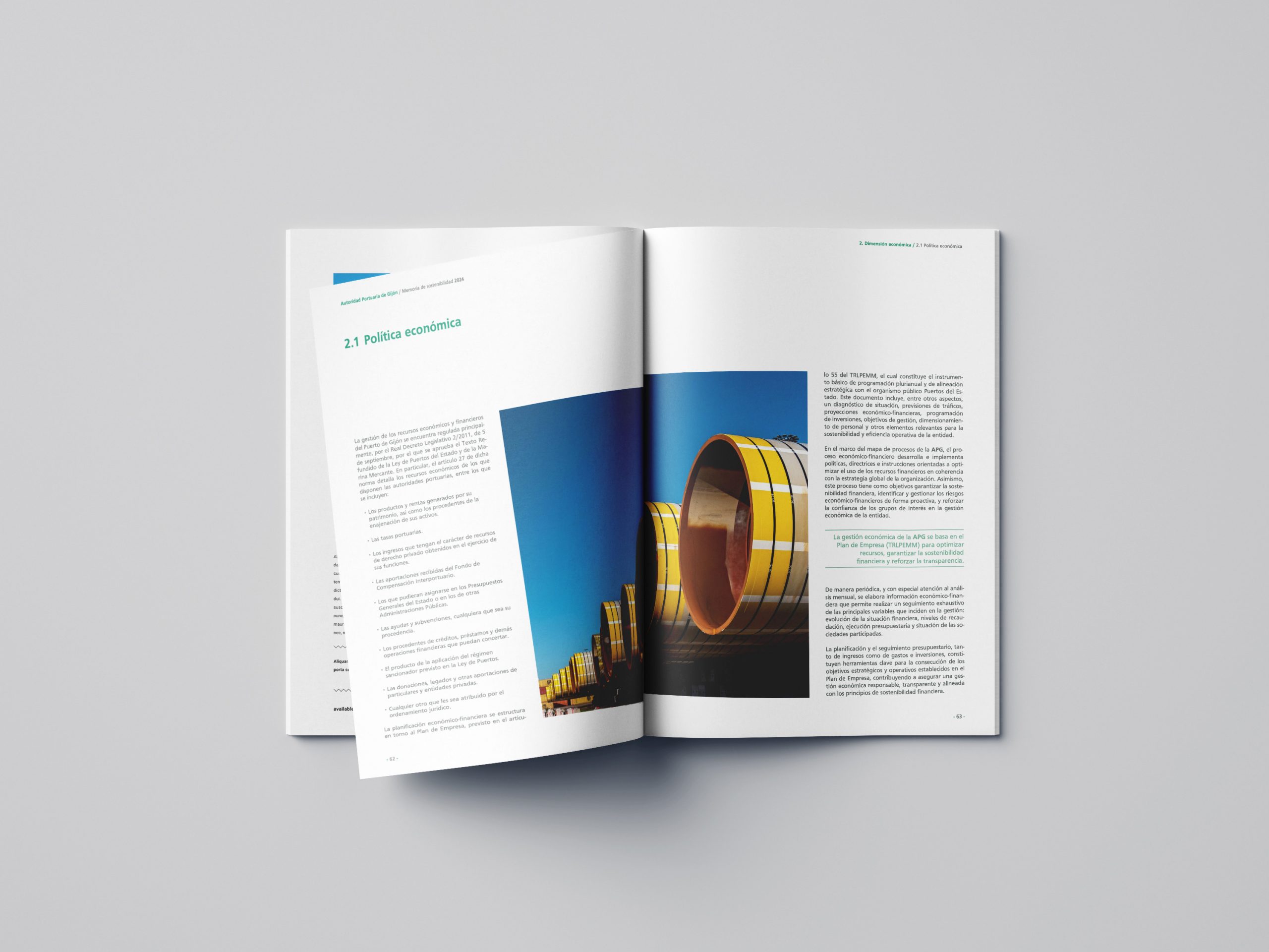 Diseño editorial de la Memoria Anual y la Memoria de Sostenibilidad del Puerto de Gijón 2025.